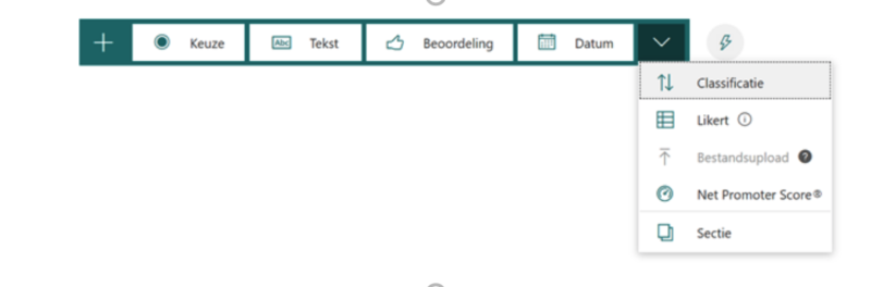 Je kunt bij beide opties (formulier of quiz) verschillende vragen toevoegen. Of het nou keuzevragen, open vragen of beoordelingsvragen zijn, het kan allemaal in Microsoft Forms.