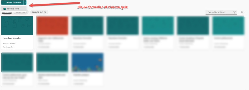 Nieuw formulier of nieuwe quiz