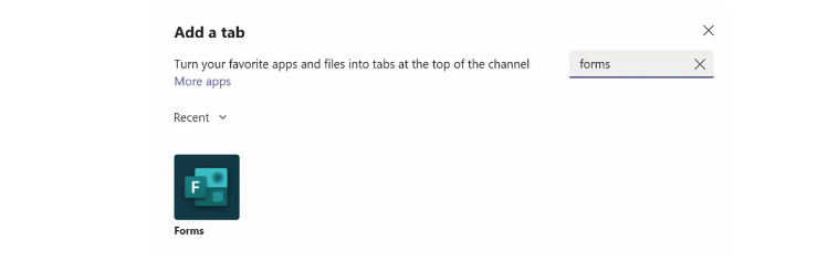Wanneer je een formulier integreert in Teams, kun je kiezen om een bestaand formulier toe te voegen óf om een nieuw formulier aan te maken. Het is ook mogelijk om een terugkerend formulier toe te voegen.