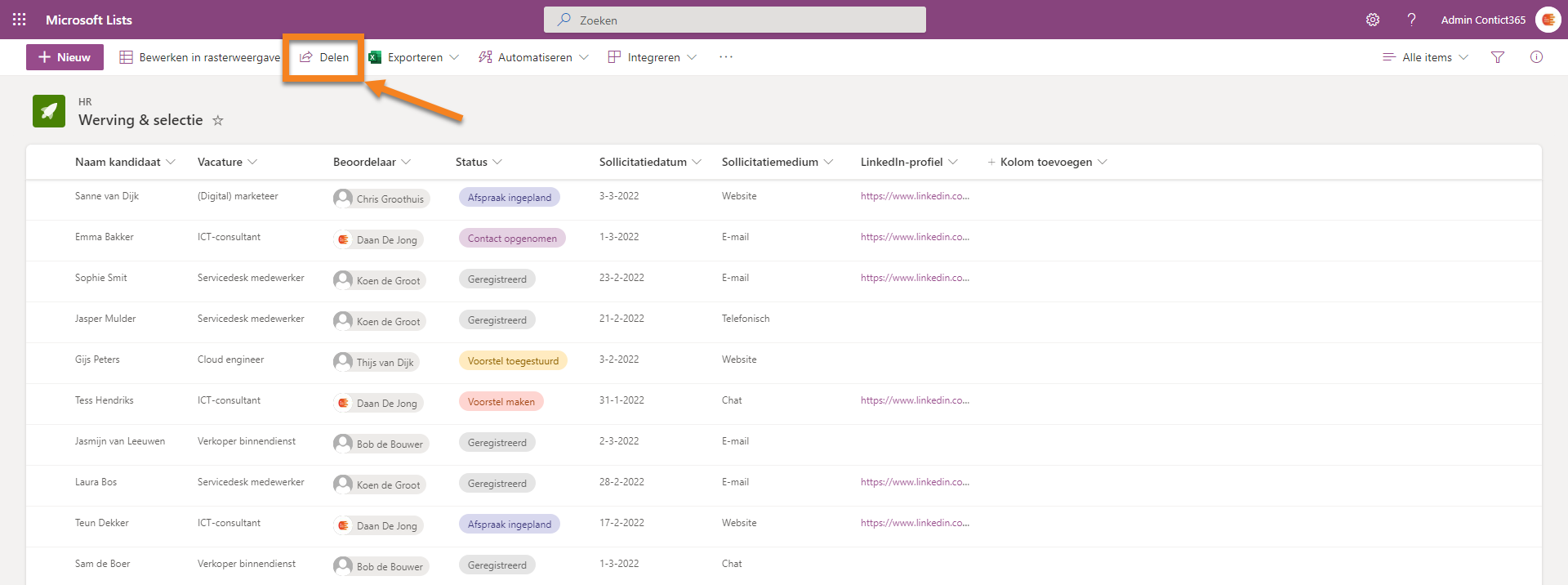 • Specifieke items óf de gehele lijst delen met interne of externe personen
